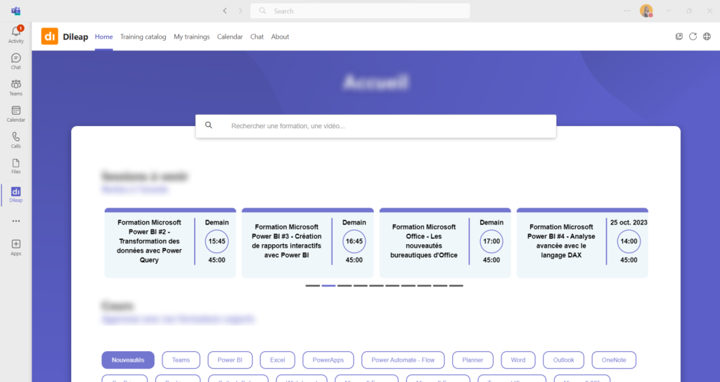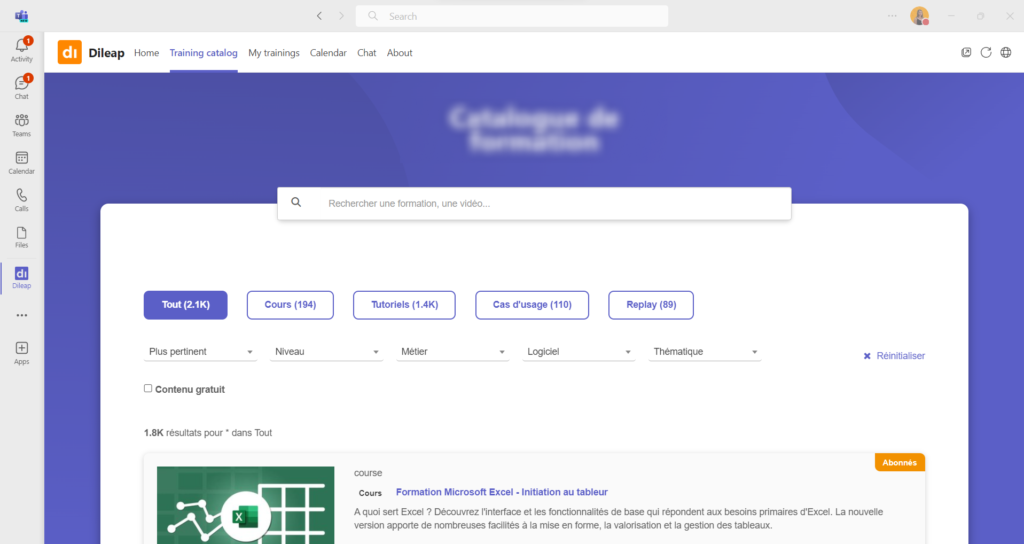 DiLeaP LMS for Teams app provides a gateway to an extensive training library.