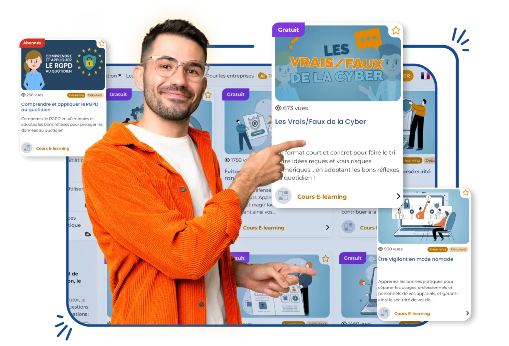 Avec plus de 15 ans d’expérience en formation digitale et des contenus conçus selon les recommandations de l’ANSSI, Mandarine Academy propose une approche pédagogique éprouvée, adaptée à tous les profils de collaborateurs, du débutant à l’expert.